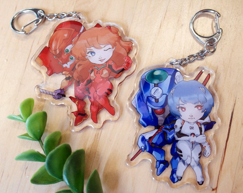 Neon Genesis Evangelion Asuka & Rei 2.7" clear acrylic charms