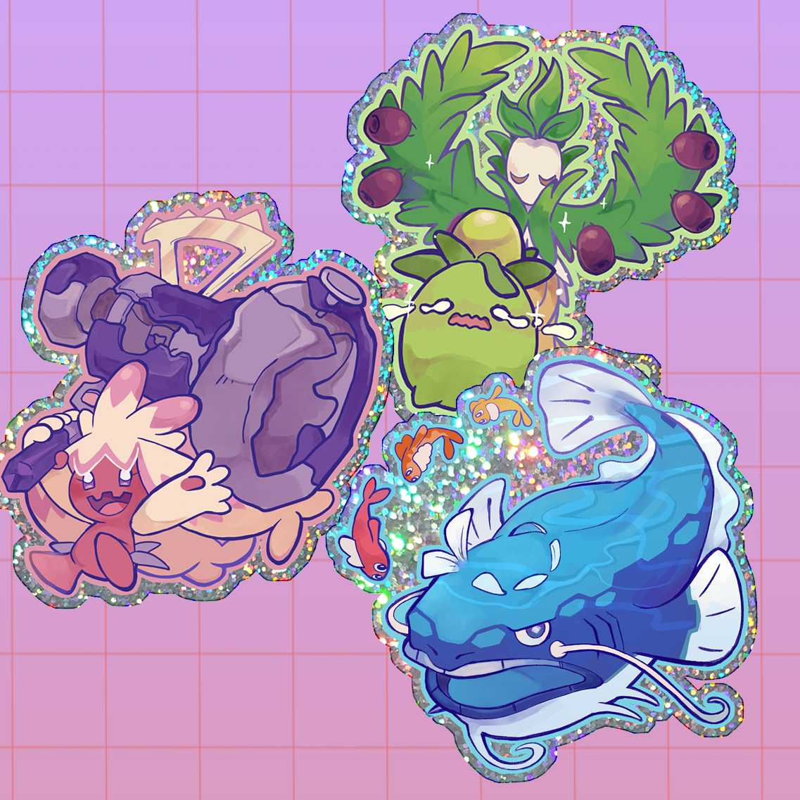 3" die cut, holo glitter stickers featuring different pokes from Pokémon SV.